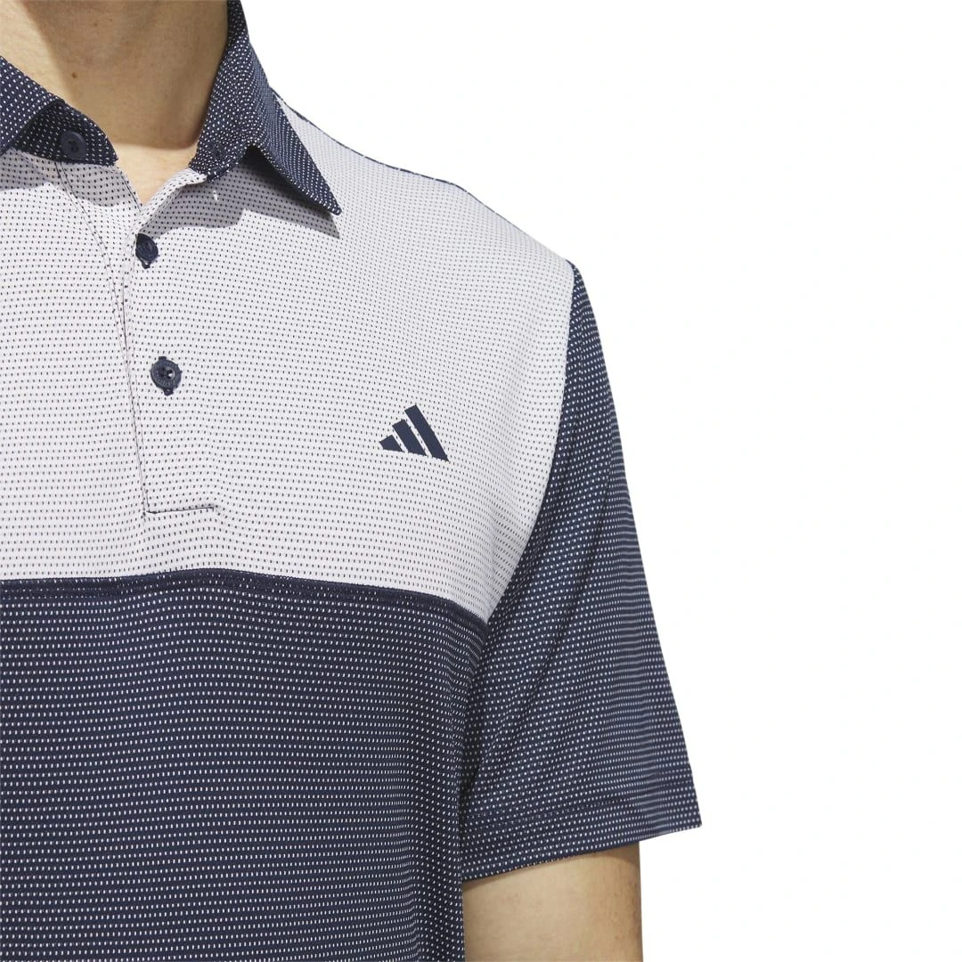 Impress your foursomes partner with more than just your skill. This adidas golf polo shirt keeps your look sharp as you drive the ball long and sink pressure putts. Soft doubleknit feels smooth to the touch and flexes comfortably as you swing.