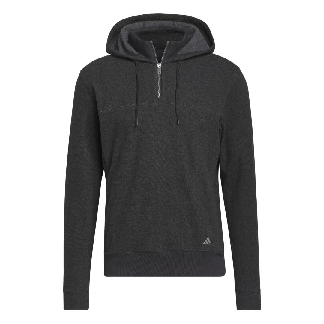 What if you could play your round in the comfort of your cosiest sweatshirt? You can with this golf hoodie from adidas. Made of soft fleece, it keeps you warm and comfy during chilly conditions while shedding light rain with its water-repellent finish. The quarter-zip design with a stand-up collar adds extra protection, and front pockets keep your hands warm between shots.