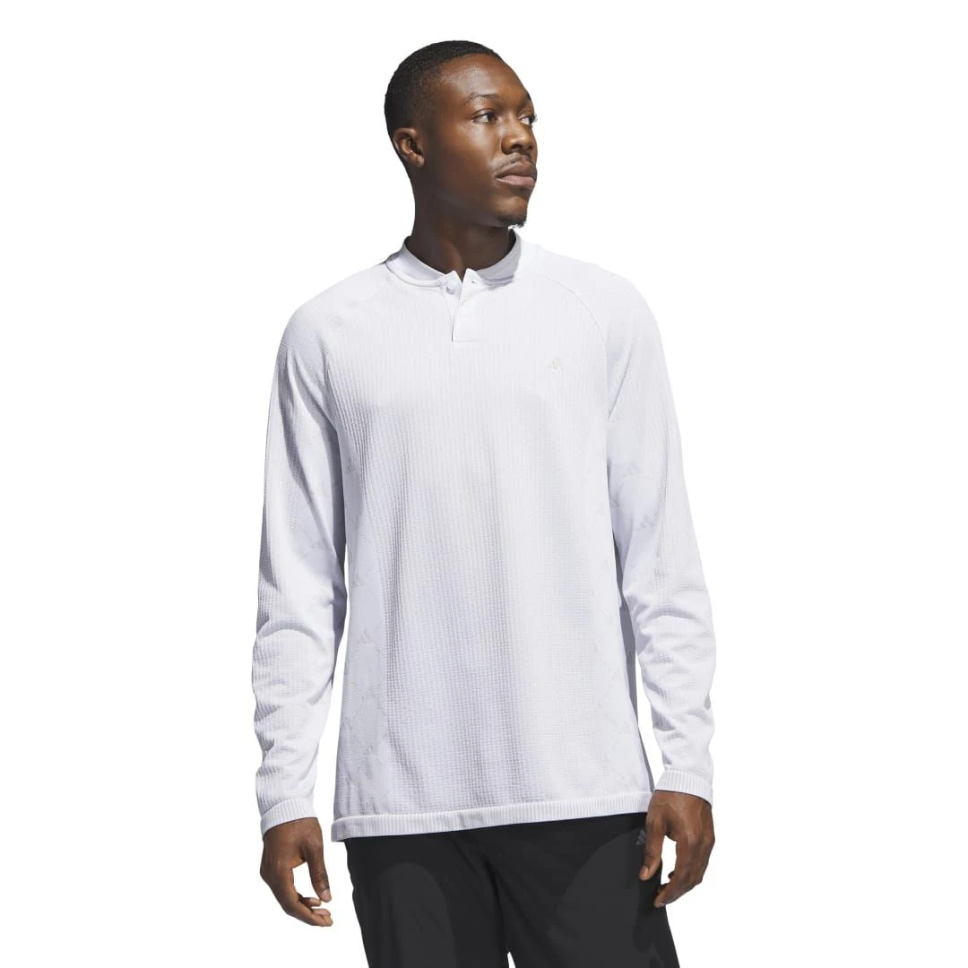When the day calls for a little extra coverage, answer with this tour-worthy golf polo shirt. It’s made of adidas PRIMEKNIT for precision-engineered comfort and stretch that moves with you through every swing. A two-button stand-up collar gives a snug feel when there’s a chill to the air. A repeating 3 Bar Logo print runs down each side to finish the look.