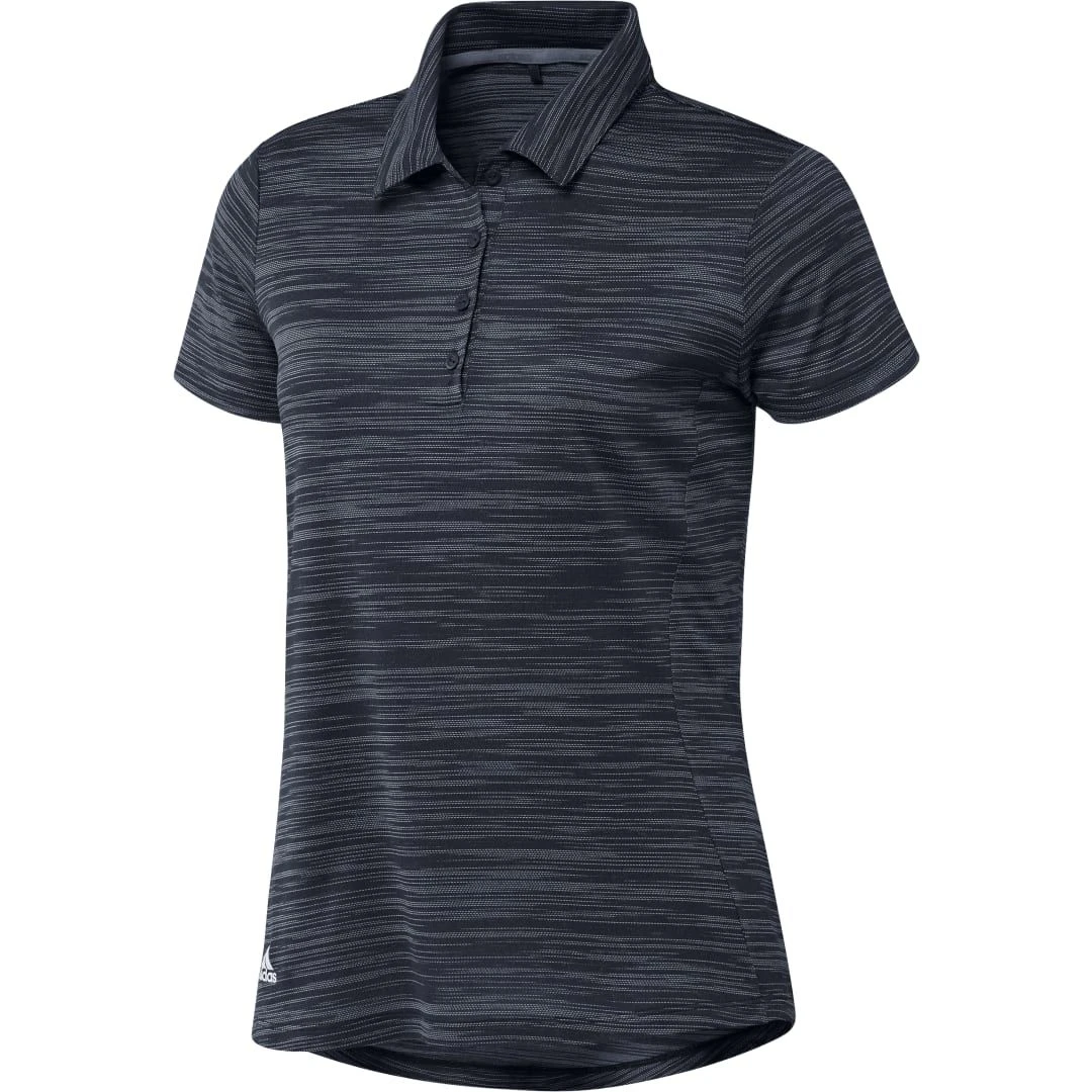 Bring casual comfort to your game. This adidas golf polo shirt is made of soft piqué with four-way stretch for a full range of motion on the course. The space-dyed design brings fashion-forward style to the fairway, and the shaped hem adds a feminine touch.