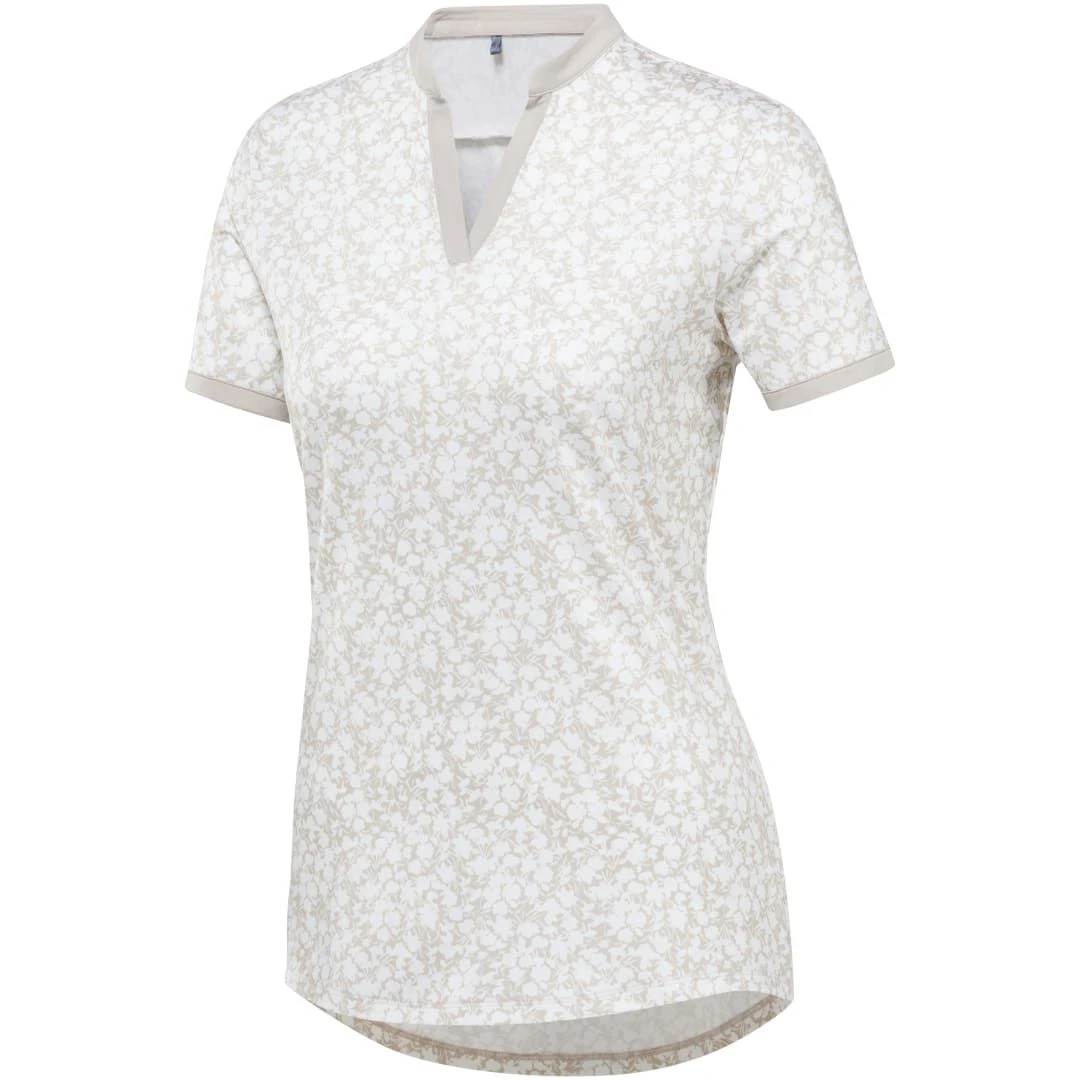 Made for the competitive golfer. This adidas golf polo shirt has a soft and stretchy feel to keep you comfortable through every swing. It has an open V-neck collar and an eye-catching floral allover print to round out the look.