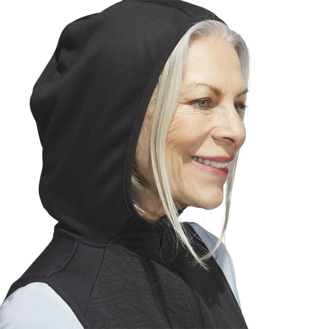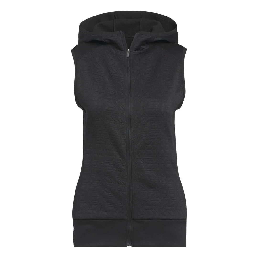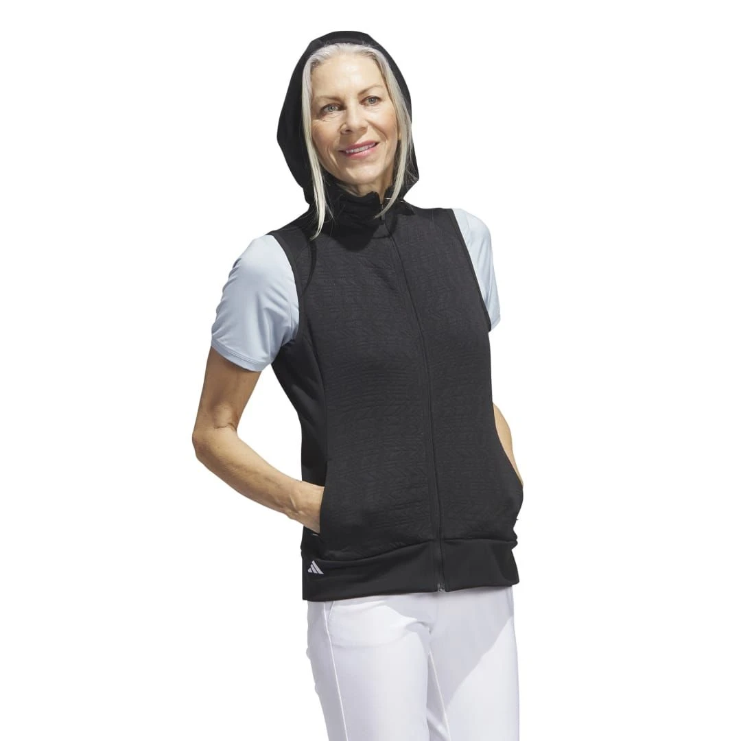 Layer up for cool-weather rounds. This adidas golf vest offers extra protection from the cold with insulating COLD.RDY. The full-zip design has a hood for added coverage when you need it. Front zip pockets stash your stuff while you play, and a jacquard pattern on the front delivers stepped-up style that looks sharp on and off the course.