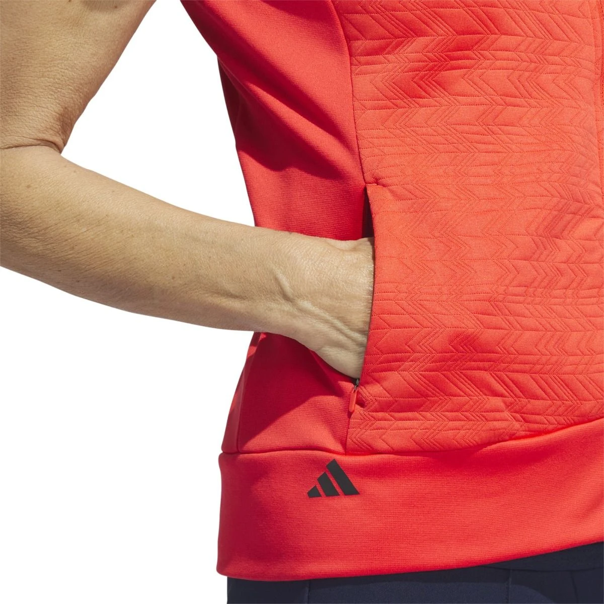 Layer up for cool-weather rounds. This adidas golf vest offers extra protection from the cold with insulating COLD.RDY. The full-zip design has a hood for added coverage when you need it. Front zip pockets stash your stuff while you play, and a jacquard pattern on the front delivers stepped-up style that looks sharp on and off the course.