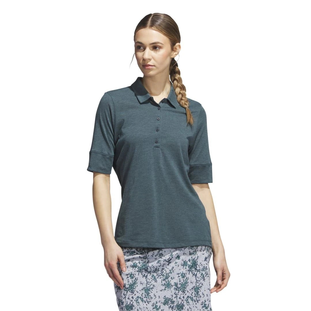 Bring a sporty look to your afternoon round in this adidas golf polo shirt. The lightweight, single jersey fabric keeps you comfortable as you move from hole to hole. Longer sleeves and a droptail hem give it a feminine silhouette, with plenty of versatility to go from course to clubhouse without missing a beat.