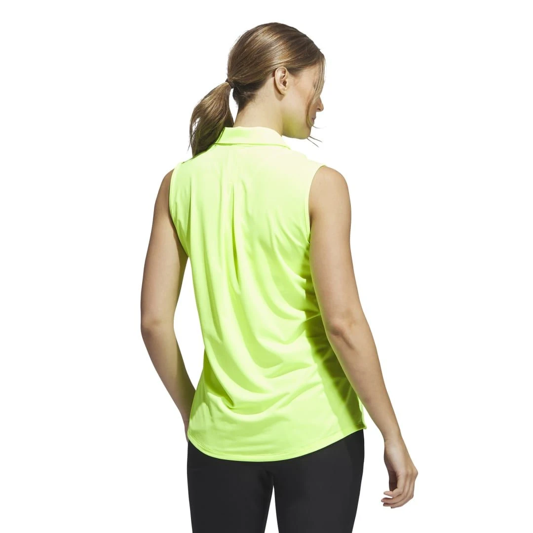 When the pressure rises on the back nine, eliminate as many distractions as possible. This adidas golf polo shirt helps you keep your cool with a sleeveless design and soft feel. Four-way stretch fabric lets you bend and flex freely, and the curved hem adds comfortable coverage.