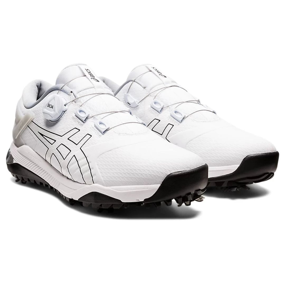 The GEL-COURSE™ DUO BOA golf shoe makes lacing up for the links a cinch. This style offers good stability with improved traction for the fairway and putting green. Equipped with a BOA™ lacing system, this shoe offers lightweight support, padding, and a more personalized fit. It also features an external heel counter that reinforces stability, so you can stay focused on your swing. The midsole is layered with FLYTEFOAM® technology to create lightweight cushioning. Additionally, the GEL® technology in the heel provides good shock absorption.