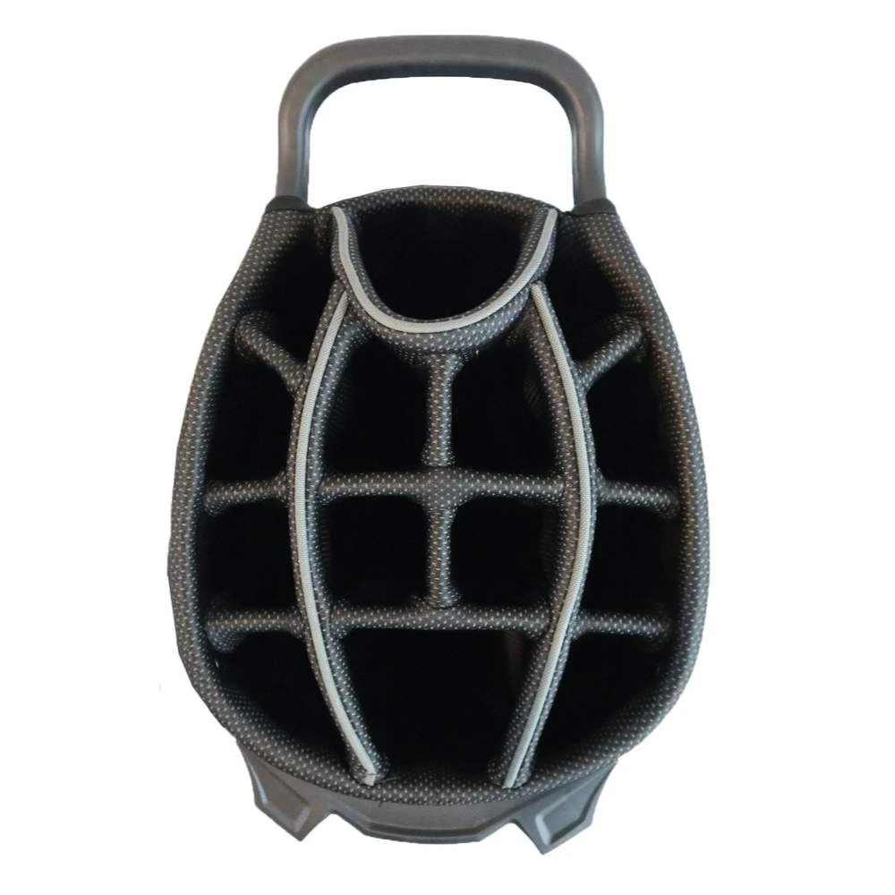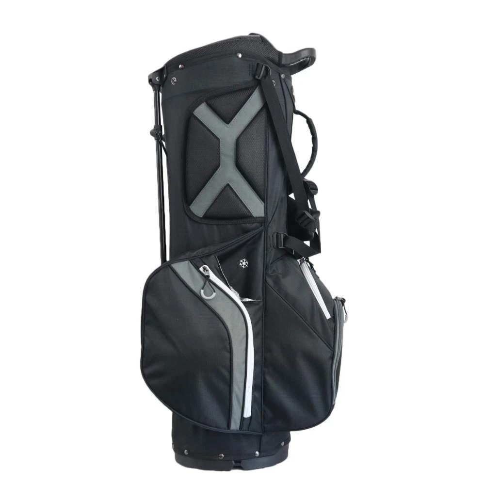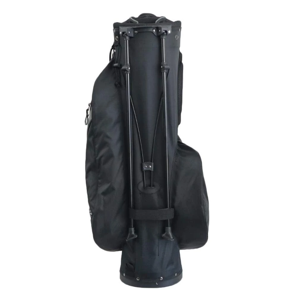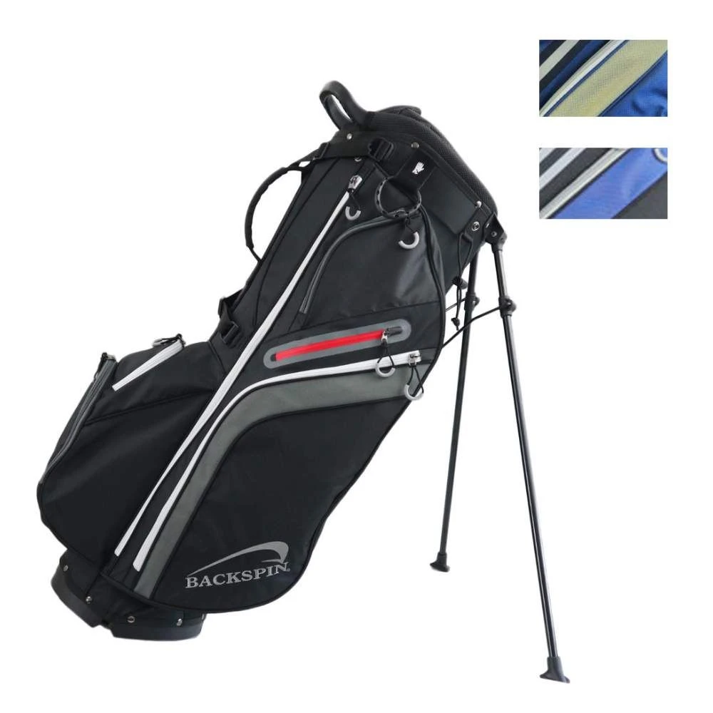 The Backspin 14-Way Stand Golf Bag has a top with full-length dividers. This is complimented with durable, lightweight nylon material and weighs 4.5 lbs. It also includes a zippered rain hood to protect your bag in the most severe weather.