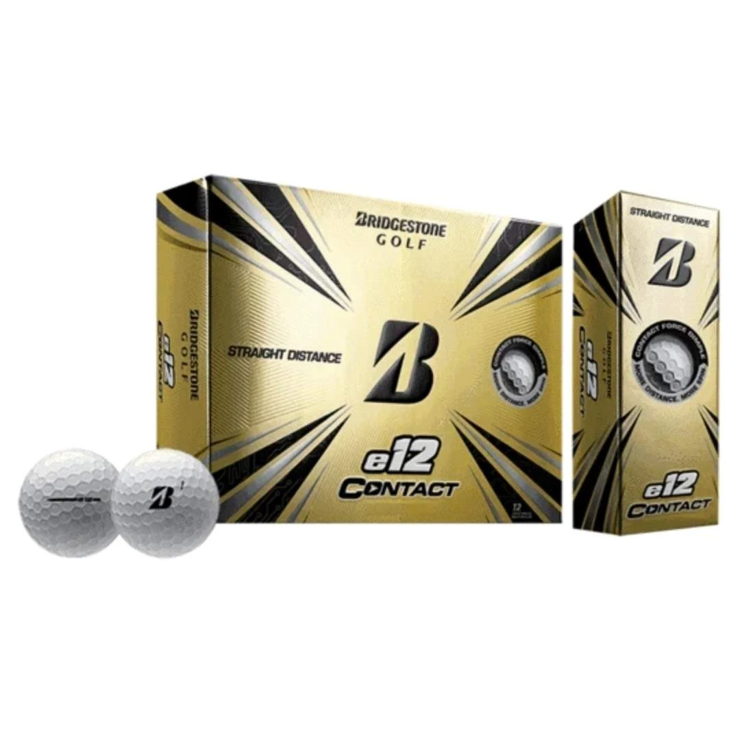 The new Bridgestone e12 CONTACT is straight distance you can see! The true game-changer is a new CONTACT Force dimple, which features a unique structure with a raised area in the center and an outer portion that slows horizontal rotation during flight. The raised area allows for 38% more contact with the clubface at impact than traditional dimples, yielding a much more efficient transfer of energy and improved core activation. The result is faster ball speed and straight distance with every club in the bag. Available in white, matte green, matte red, and matte yellow colors.