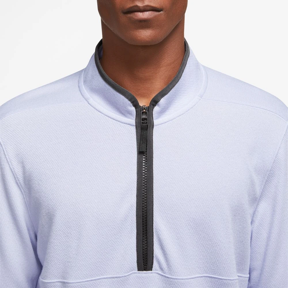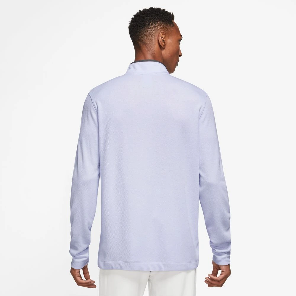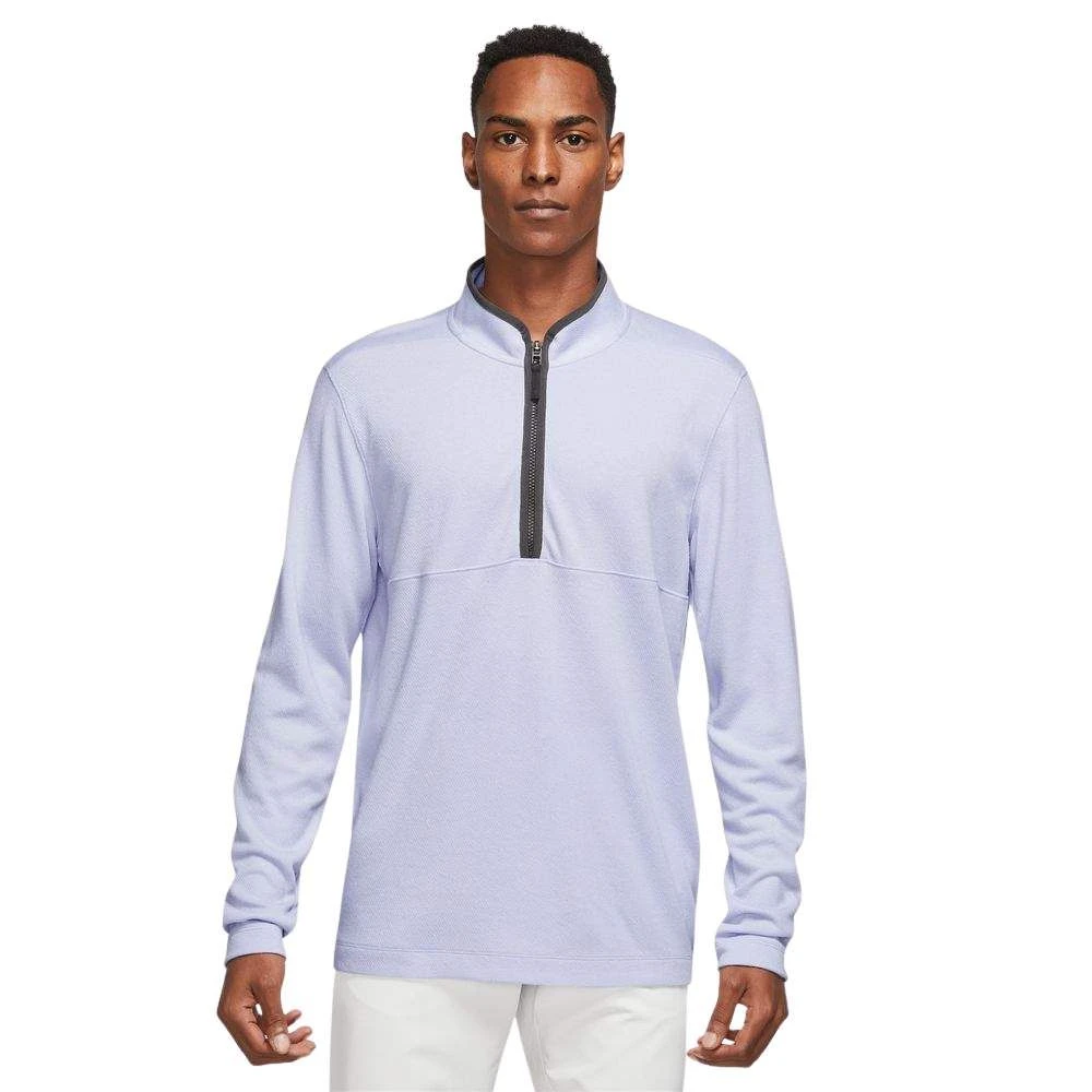 The Nike Dri-FIT Victory Top puts a soft spin on comfort. Its lightweight fabric pairs the look of your favorite sweater with the performance of technical mesh. Plus, the notch in the front of the collar lets you address the ball without fabric—or a zipper—bunching under your chin.