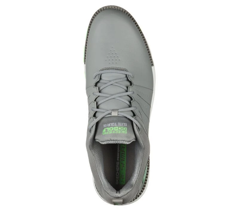 Get on the green in cushioned comfort with the Skechers GO GOLF Eliteâ„¢ – Tour SL shoe. This lace-up golf shoe features a leather upper with a lightweight ULTRA GO cushioned midsole and Goga Max comfort insole.
