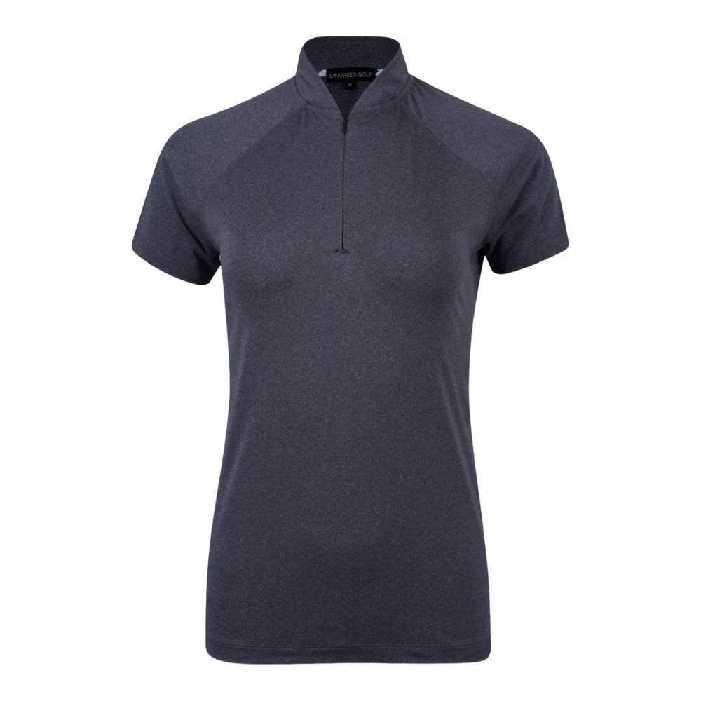 Athletic blade collar with zip closure and shoulder seam construction made to move.