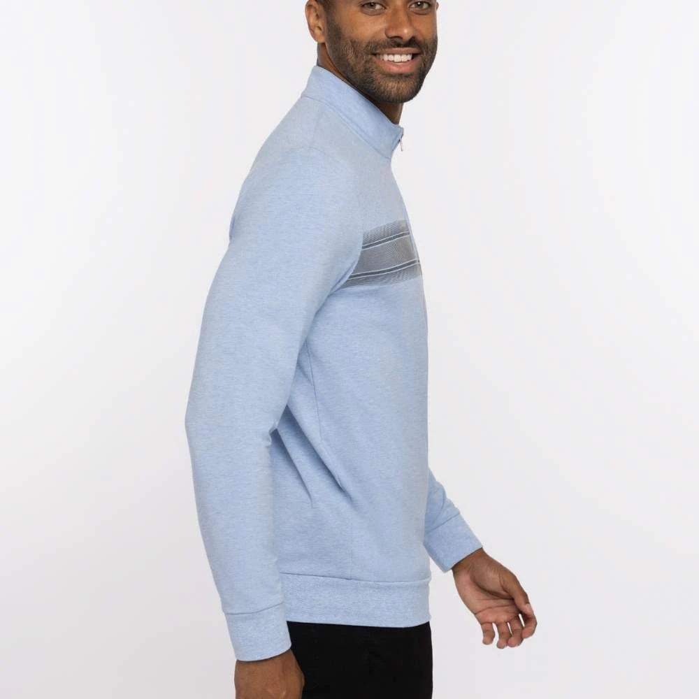 Find the perfect layer (named after the perfect drink) with the TEQUILA SOUR quarter-zip jacket, featuring textured chest stripes against one of our favorite seasonal colors.